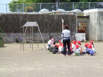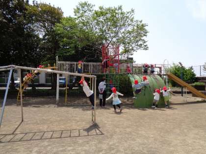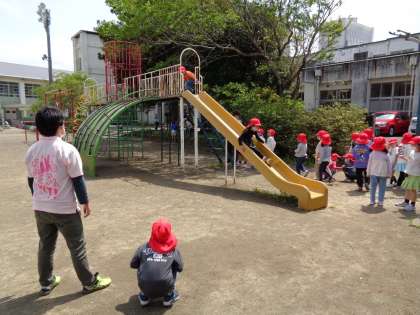先生の注意を聞いたあと、順番を守って一人ずつ滑り台を滑ってみました。