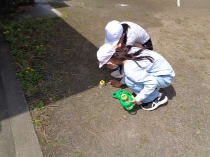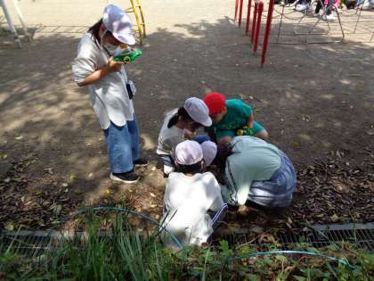 子供たちが真っ先に見つけて夢中になっていたのは、ダンゴムシとアリでした。