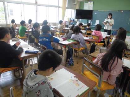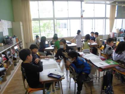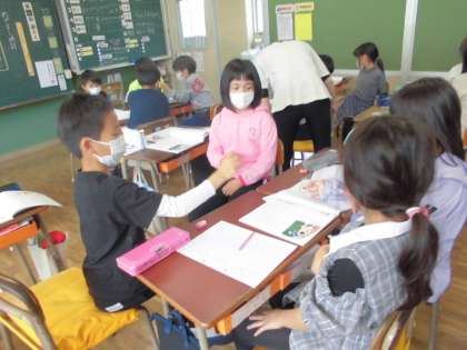 教材文「目覚まし時計」のお話を読んで、規則正しい生活について考えていました。
