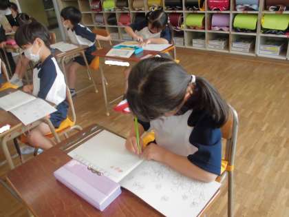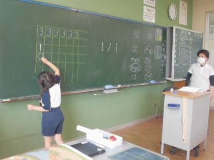 数字の1の学習をしながら、ノートの使い方も学んでいます。