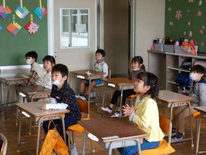 1年生は、Chromebookを明日持ち帰ります。ご家庭で充電とパスワードの設定をお願いします。