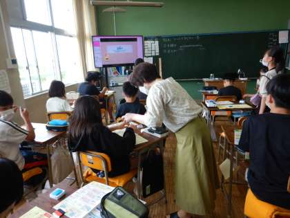 「ソーイング はじめの一歩」の学習がはじまりました。5年生にとっては、本当に「はじめの一歩」となる本日、地域学校協働本部より裁縫ボランティアの方を派遣いただき、学習支援にあたってくださいました。子供たちは、針に糸を通すところから、玉結び、玉どめまでを学習しました。