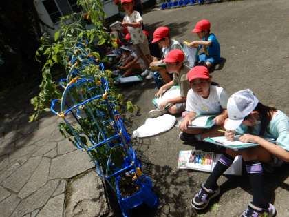 大きく育った野菜の観察をしています。