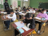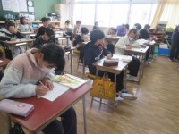 「いろんな木の実」の曲に合わせて楽器を演奏しました。グループ内で、ギロ、マラカス、クラベルに分かれてリズムよく打ち鳴らしました。