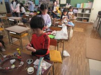 紙をくしゃくしゃにしたり、こすったりして、どんな音が出るのかを楽しんでいます。