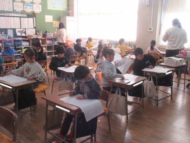 どの学級も、同じ時間にテストを実施していますので、学校全体がぴりっとした空気に包まれています。