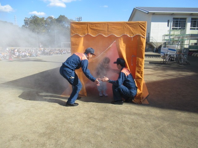 そのあと、学級の代表児童が、煙体験をしました。