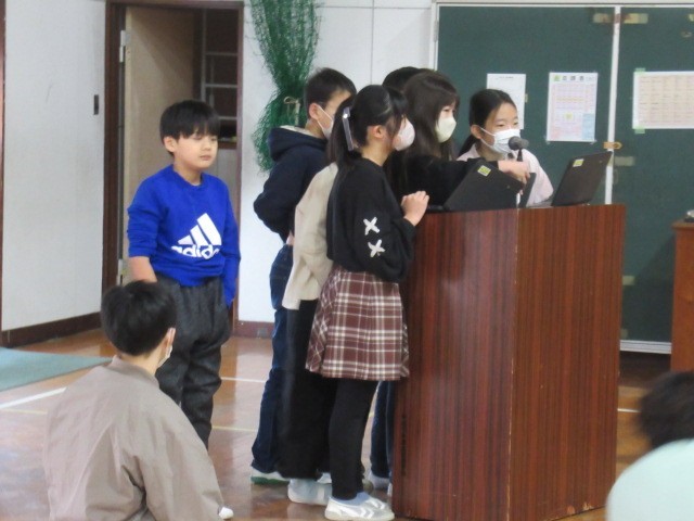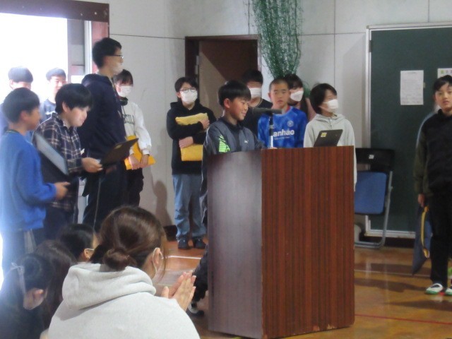 児童代表の言葉では、5年生になって、まわりに目を向けた行動ができるようになった。これからも、思いやりの気持ちをもって行動したい。と、次年度へ向けての目標を堂々と発表しました。