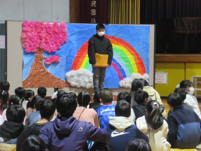 始業式では、みんなが主役となって、輝く沢田小、輝く自分をつくっていくことを誓い合いました。