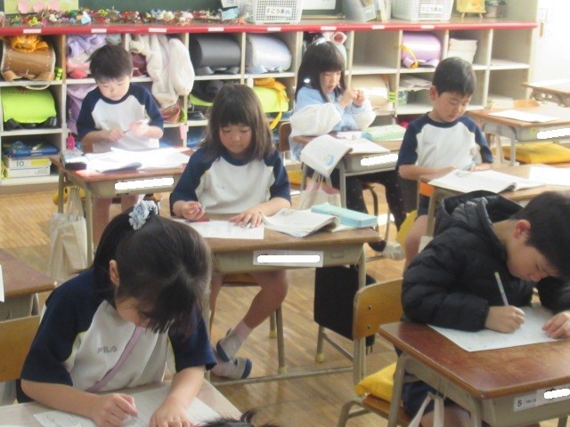 書写では、ひらがなで書かれた言葉を、よく見て、ノートに丁寧に書いていました。