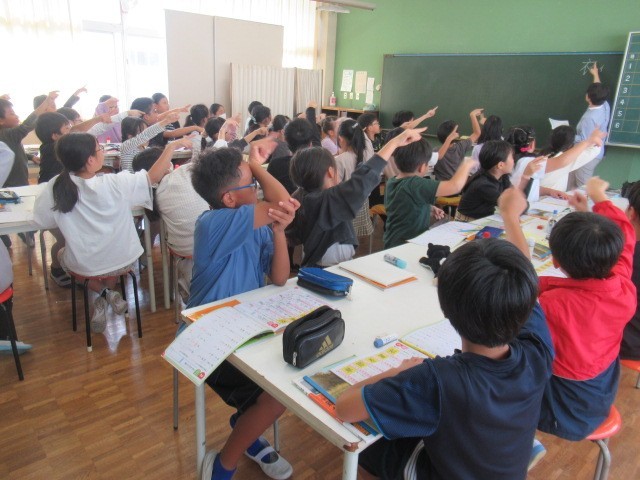 4年生は、今日、合同授業を行いました。