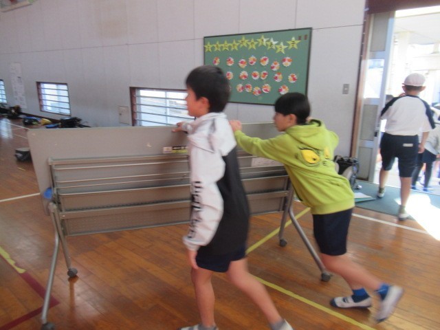 昼休み、5年生は、月曜日に開催される「就学時健診」の会場準備をしてくれました。