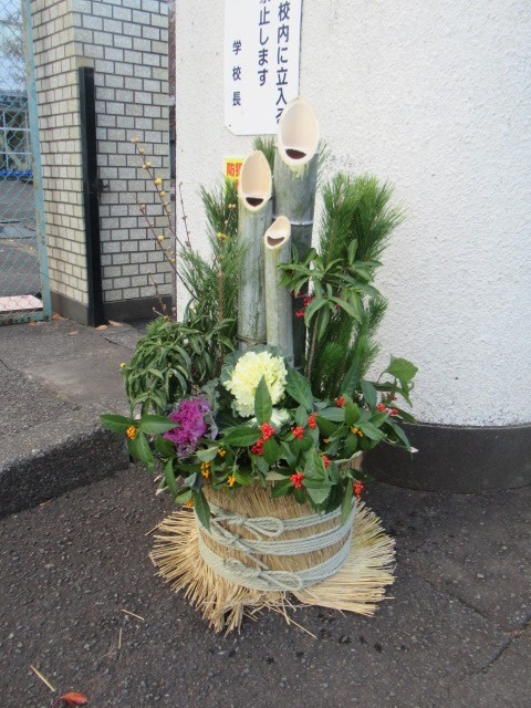 総合の学習で交流させていただいた高尾園様が、今年も立派な門松を沢田小に届けてくださいました。