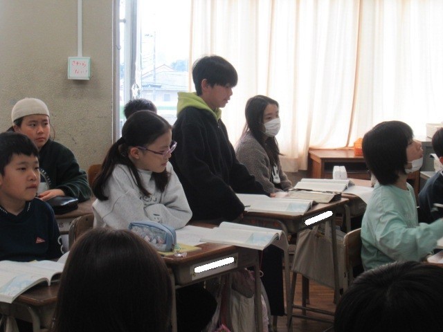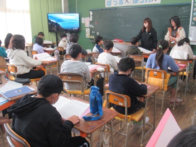 家庭科の授業では、栄養士や栄養教諭の先生方と一緒に、給食メニューの栄養について考えました。