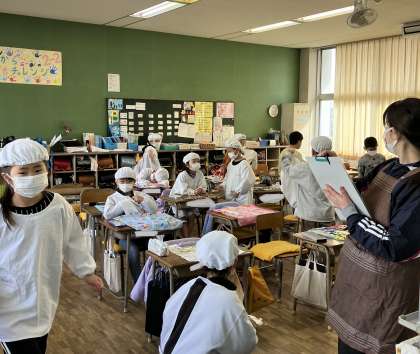 子供たちはしっかり手洗いをして給食の準備に取りかかります。