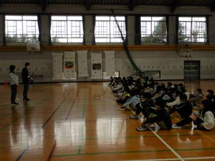 いよいよ卒業式の練習が始まりました。まずは、実行委員から練習の際に気をつけたいことの提案があり、みんなで確認しました。卒業式に向けて、気持ちを高めていきます。