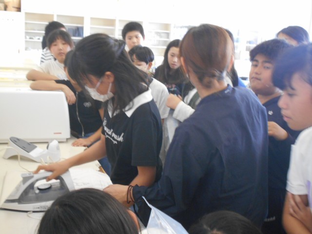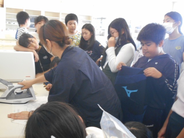 (昨日の家庭科です)2学期はミシンの使い方を学習しています。ミシンの直線縫いを使ってエプロンを作ります。まずは三つ折りをするためにアイロンの使い方を学習していました。自分が使う物を製作するのは楽しみですね。