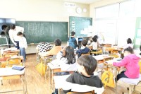 今日の国際室での学習は、今2年生が国語で学習している「かさこじぞう」をお話を、日本独自の文化や言葉を理解しながら読み進める学習でした。「いろり」「つらら」「たわら」など、普段の生活の中では余り使われない物や言葉がたくさん出てくる教材です。動画や画像、体験と結びつけながら、理解を深めていました。