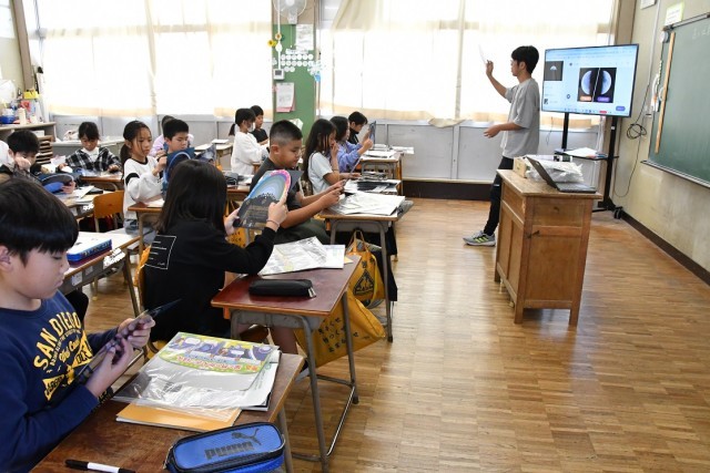理科の授業で、星座早見盤を配布していました。手元で星空の様子や位置を確かめられます。