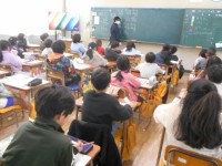 初めて毛筆の書き初めにチャレンジした3年生。堂々とした書き初めの作品が並んでいました。