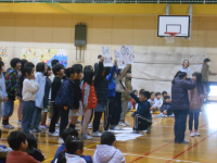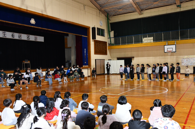お世話になった6年生に感謝とエールを送るために、「6年生を送る会」が行われました。企画は5年生です。