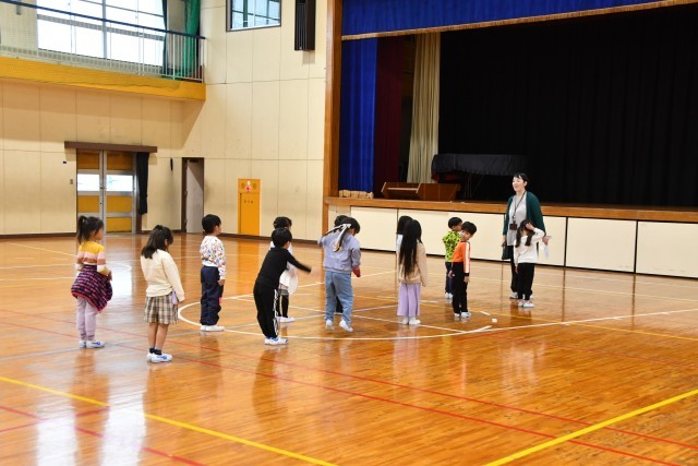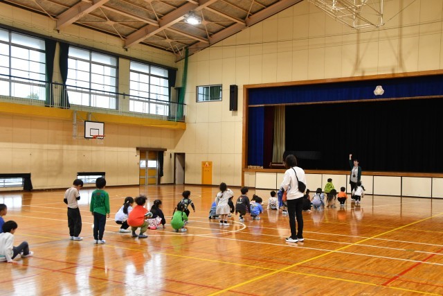 体育館できれいに並ぶ方法を教わっていました。2列でかっこよく並べるようにがんばっています。