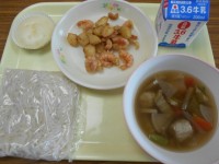今日のメニューは、ご飯、牛乳、スタミナ焼肉、ボイルドキャベツ、麩のすましもの でした。