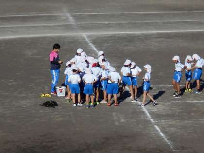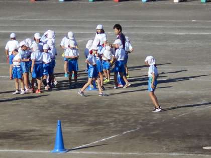 4年2組の体育は運動場でした。保護者の方も参観してくれています。