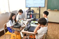 4年生では、まず、みんなで「パプリカ」を歌って、踊って楽しい雰囲気を出していました。