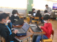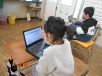 4年生は社会です。自然災害からくらしを守るという単元です。地震にクローズアップして考えています。地震が起こると、どんな災害が起こるのかを考えていました。