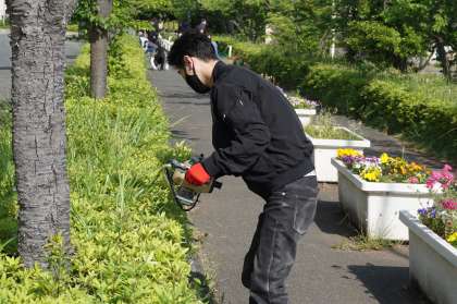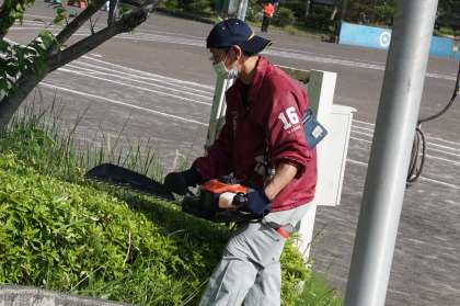 様々な場所に分かれ、丁寧に作業を進めています。ありがとうございます。トリマーなど、機械の部隊も活動を始めました。