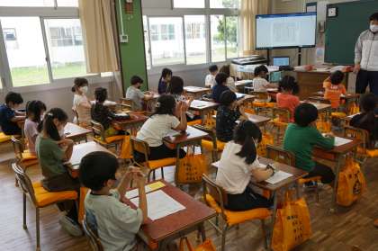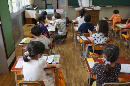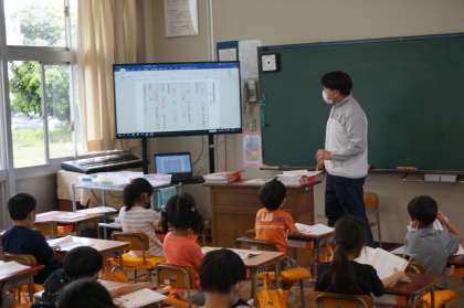 1年生は国語です。ともだちと話そう の単元です。知りたいことをたくさん聞いて、お話しをつなげていきます。