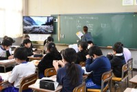 5年2組算数の授業の様子です。倍を使って高さを調べようという学習課題です。まず計算の練習から入りました。