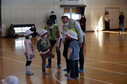 続いて、不審者が声をかけてきたときの対処の仕方について学んでいきます。全員が行います。
