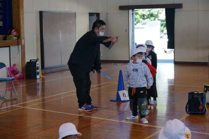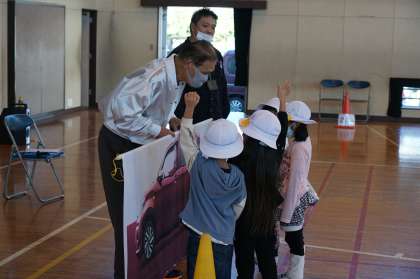 続いて、不審者が声をかけてきたときの対処の仕方について学んでいきます。全員が行います。