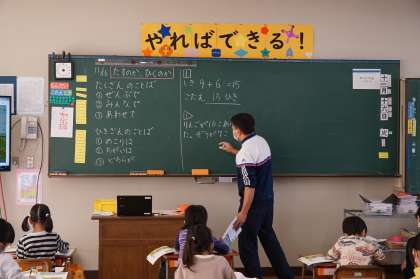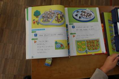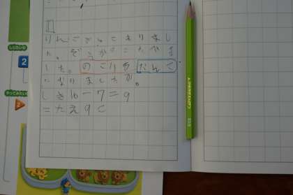 1年生算数の授業です。繰り下がりのある引き算の練習です。問題をしっかり書くこともやっています。