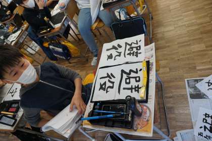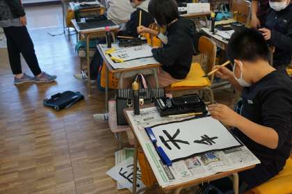 5年1組書写の授業です。自分の好きな動物の漢字を調べて書いています。「避役」とはどんな動物なのでしょう?答えは「カメレオン」だそうです。勉強になりました。
