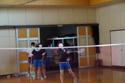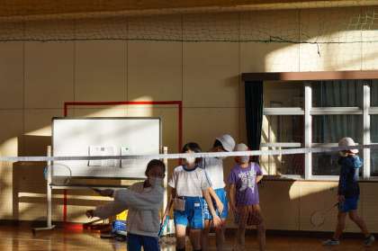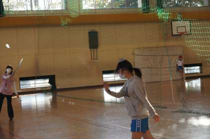 バドミントンクラブです。シャトルを打つ練習をしています。