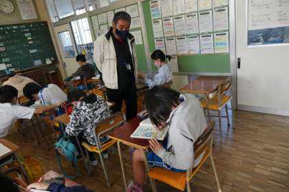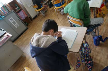 これまで習った漢字を使って文を書いていきます。主語や述語など注意するところを確認します。漢字を調べる子もいます。