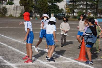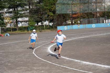 3年生体育の授業です。リレーをしていました。ほぼ同じタイムの2つのチームです。