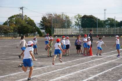 3年生体育の授業です。リレーをしていました。ほぼ同じタイムの2つのチームです。
