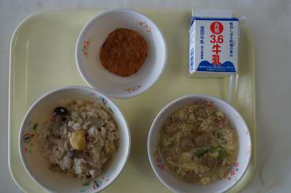 本日の献立は、吹き寄せおこわ サツマイモのコロッケ 卵とお麩の汁物 です。吹き寄せおこわは餅米の味付けがよく、栗やシメジといった具材にもよく合っていました。サツマイモのコロッケは、サツマイモの甘さが感じられます。子どもたちも喜ぶことでしょう。卵とお麩の汁物は、とてもおいしかったです。