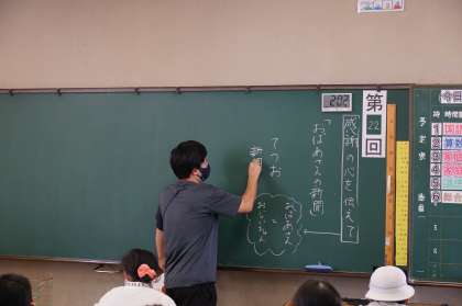 6年2組道徳の授業です。「おばあさんの新聞」いう資料を使っています。新聞配達の少年に新聞を読ませたいと思い、実は字の読めなかったおばあさんの心遣いについて考えていきます。
