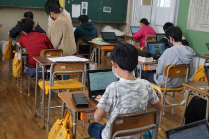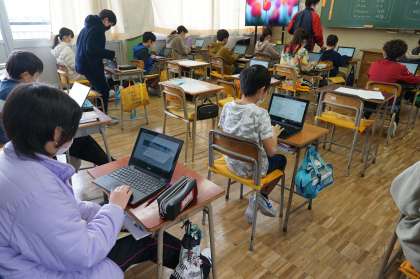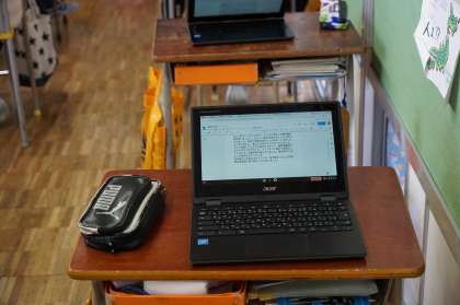 6年2組国語の授業です。自分を見つめてみようの単元です。小学校生活の思い出について、Chromebookを使って考えています。