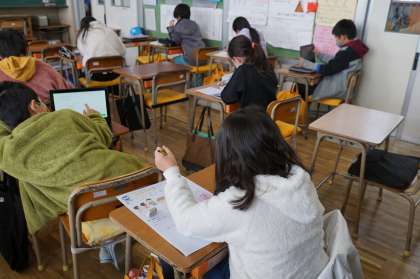 3年生算数の授業です。確かめのプリントを進めていました。終わった子はAIドリルを進めていきます。ドリルの活用が進んでいます。