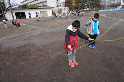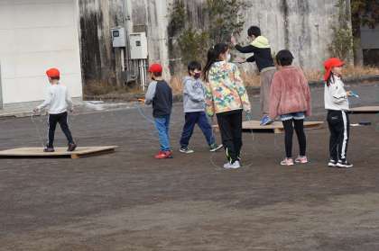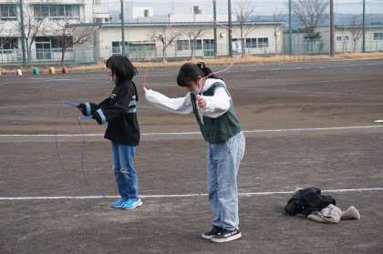 なわとび運動の様子です。今日も風が無いので練習にはもってこいです。みんな頑張っています。