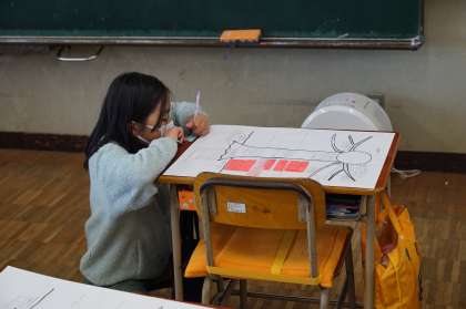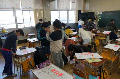 4年生国語の授業です。ドリームツリーの作成でした。友だちと見合って修正を加えていきます。どんなツリーが完成するのでしょう。
