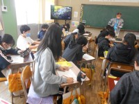 6年1組理科の授業です。地球上における水の循環についての学習です。雲や雪、雨から川や海、氷ゆ地下水など場所や姿を変えて水が地球上を循環していることを調べていきます。