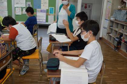6年1組国語の授業です。文章の構成を考えるの単元です。文章のならべ方の順番についての授業です。結論が先に来ているもの、後にくるものなどの違いを確かめています。