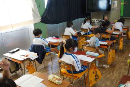 2年生国語の授業です。違う読み方をする漢字の学習です。地図や図書の「図」の字です。